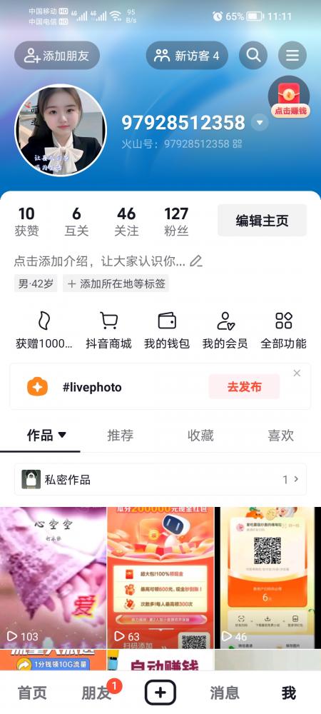 用抖音火山版扫码关注我,向我赠送3万火苗就行