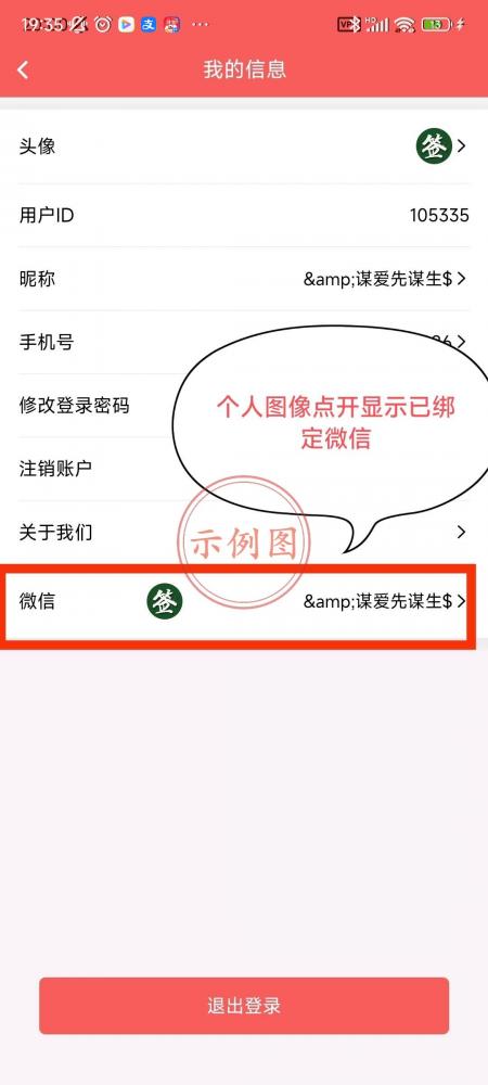 个人图像点开截图 (必须显示已绑定微信)